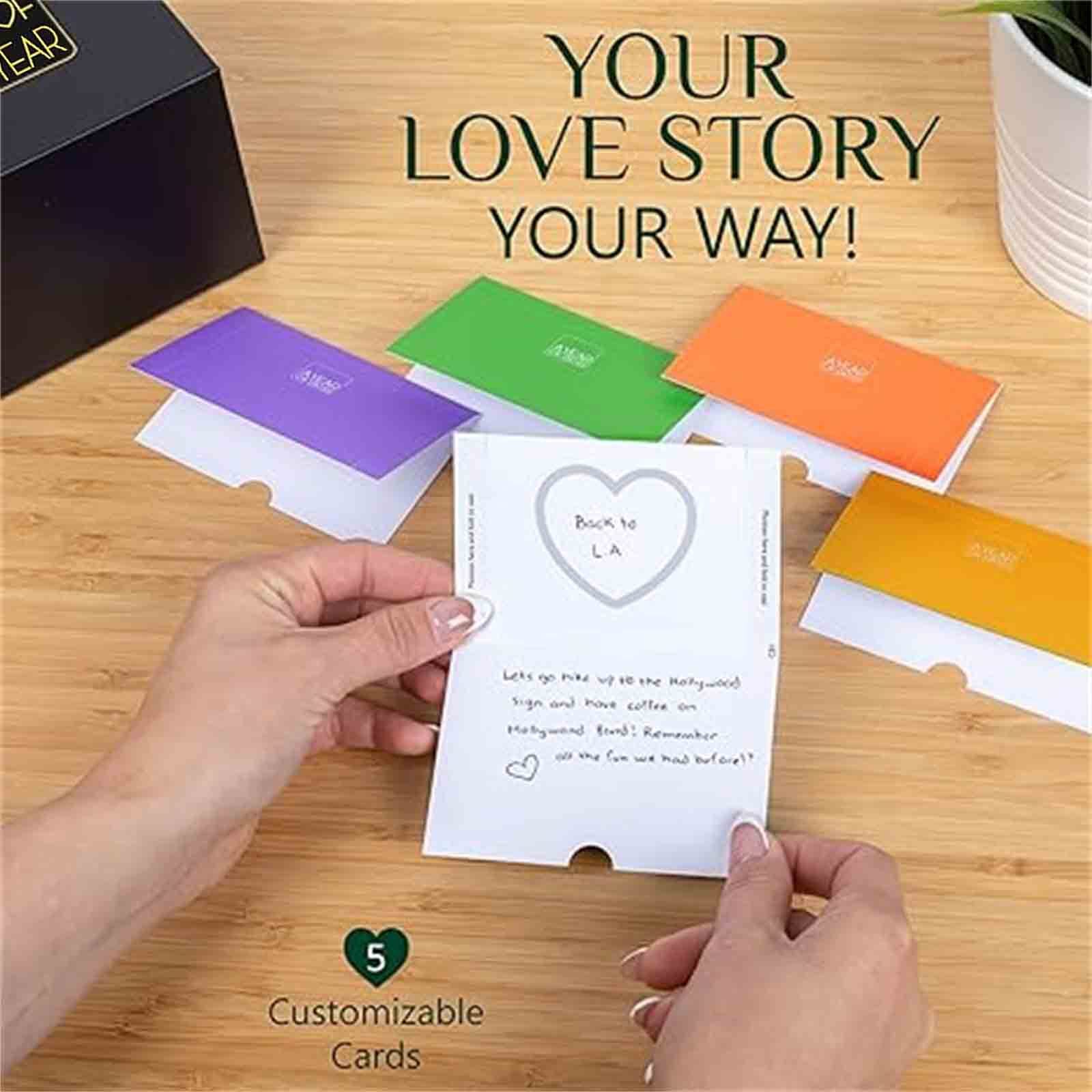 Want to keep the spark alive all year round? 😏 Our "A Year of Dates" box is the perfect way to do just that! 😉 This box is packed with 52 sealed date cards, plus 5 blanks to add your own personal touch. 😉